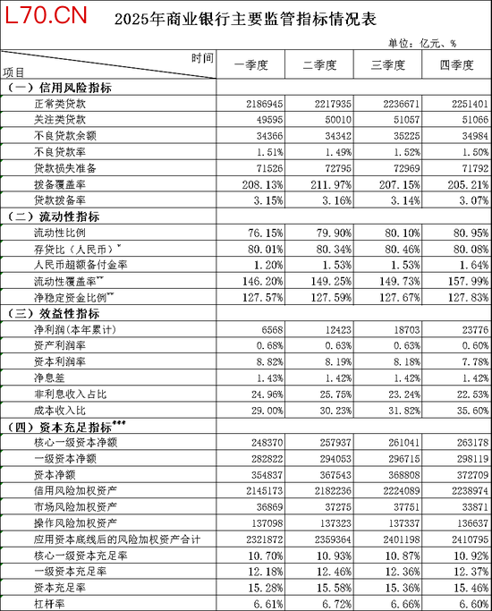 年前,国家金融监督管理总局发布了2025年商业银行四季度主要监管指标。