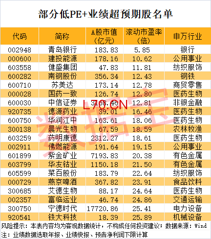 业绩超预期个股名单出炉