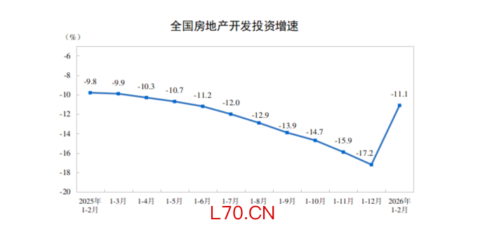 国家统计局:1—2月份,全国房地产开发投资9612亿元,同比下降11.1%