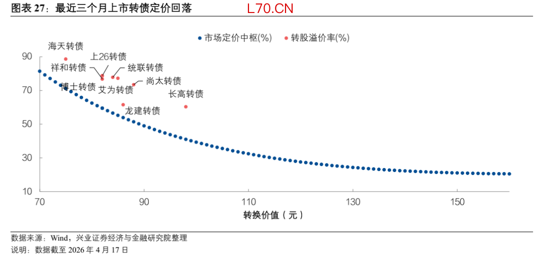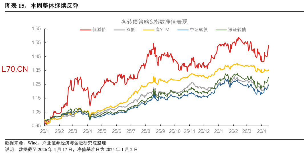 从发行上市情况来看,本周上26转债上市,但由于市场整体偏弱,新券定价未达到157.3元的最高水平,首日收盘价为148.83元。