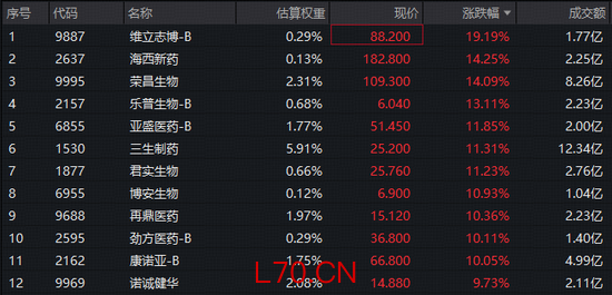 港股通创新药ETF华宝(520880)47股飘红,十余股涨超10%!维立志博-B惊人暴涨超19%,海西新药、荣昌生物涨超14%,乐普生物-B涨超13%。