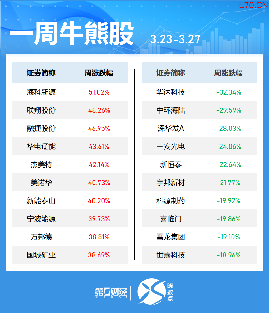 一周牛熊股丨7股涨超40%,最牛股周涨超50%
