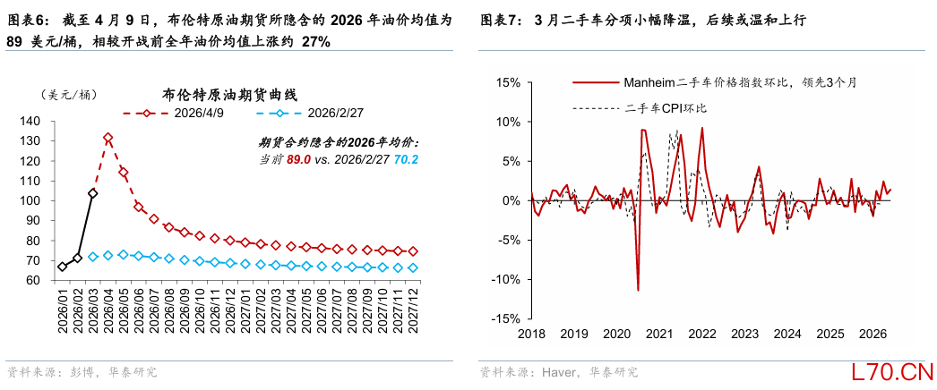 3月CPI回升主要来自能源分项,对联储决策没有影响;往前看,若后续中东局势延续缓和,油价回落,则联储下半年仍有降息空间。如我们在《美国能否在能源短缺中独善其身?》(2026/4/7)中所述,油价上涨主要通过能源分项传导至CPI数据,而通过间接渠道对食品、除机票外核心服务通胀的传导较为有限,且存在时滞。随着美伊开启谈判,原油期货曲线整体下移,若中东局势缓和,油价还有下行空间,我们预计油价对美国CPI的推升较为有限。考虑到美伊谈判的不确定性,联储短期将按兵不动,观察美伊局势以及经济数据。往前看,前瞻指标显示,美国新增非农就业在二季度或有所放缓,我们预计Warsh接任联储主席后,联储下半年仍有一定降息空间。