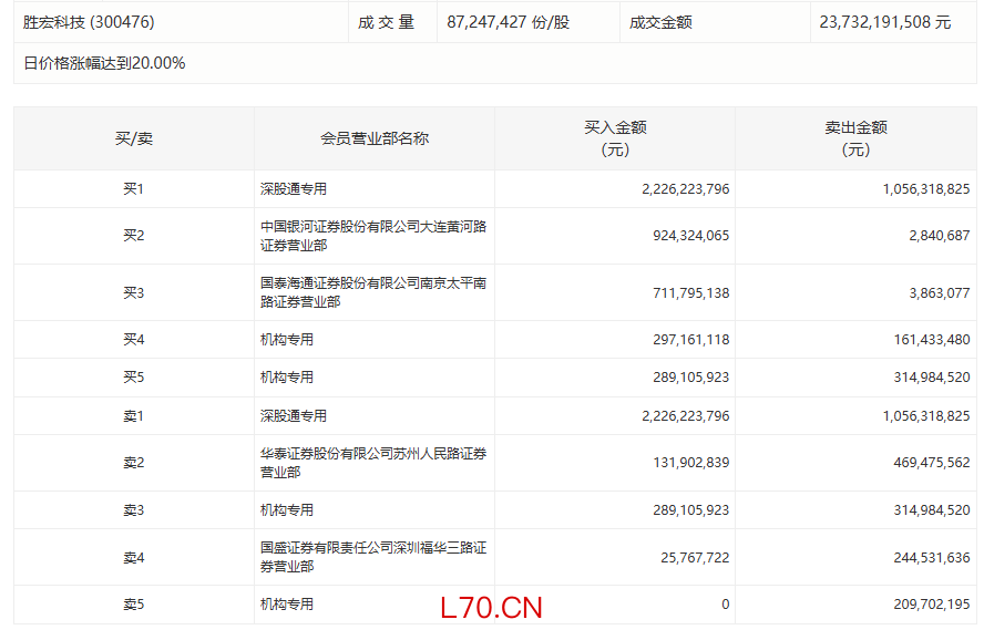 胜宏科技今日20cm涨停,陈小群席位净买入9.21亿元