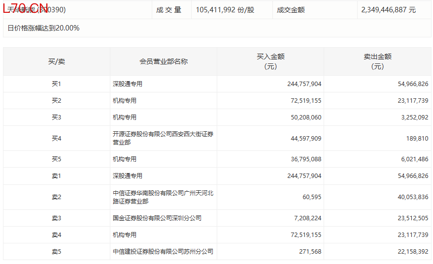 天华新能今日20cm涨停,3家机构专用席位净买入1.27亿元