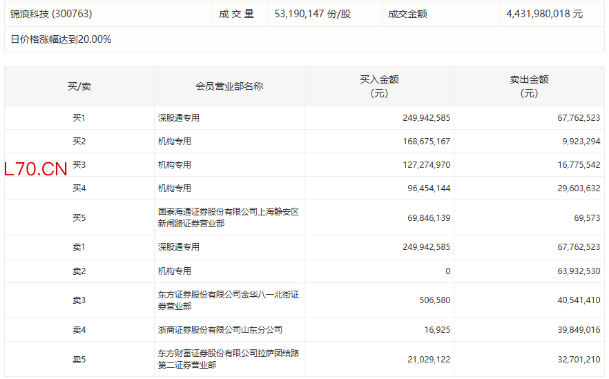 锦浪科技今日20cm涨停,3家机构专用席位净买入3.36亿元