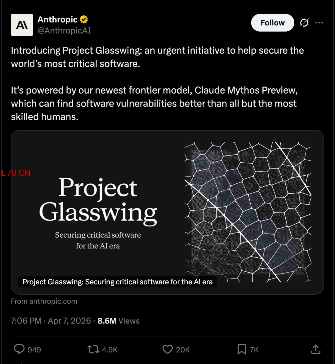 他们联手亚马逊、苹果、谷歌、微软、思科等公司,启动了一个代号为「玻璃之翼(Project Glasswing)」的绝密防御项目。