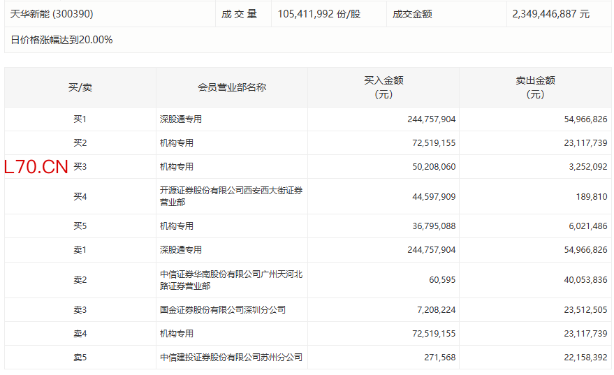 天华新能今日20cm涨停,3家机构专用席位净买入1.27亿元
