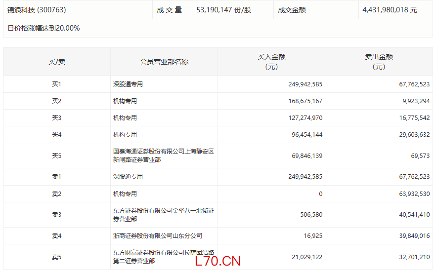 锦浪科技今日20cm涨停,3家机构专用席位净买入3.36亿元