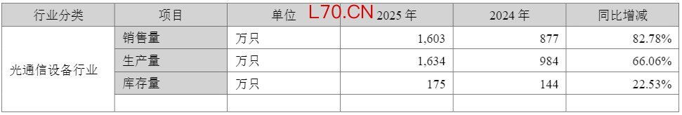 具体业务来看,新易盛2025年光互联产品产能1747万只,较上年的1095万只大幅增加了近60%。主要在于公司泰国工厂二期于2025年初正式运行,产能处于持续释放过程中。