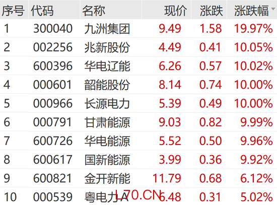 3月20日上午,电力板块继续活跃。华电辽能5连板,韶能股份3连板,东方新能(维权)5日3板,国新能源、华电能源2连板。
