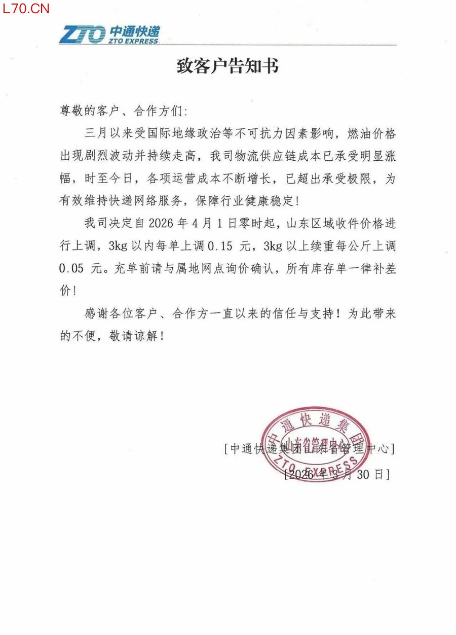 最近,一些快递企业的客户告知书在网上传播,快递B端的电商件要涨价了。