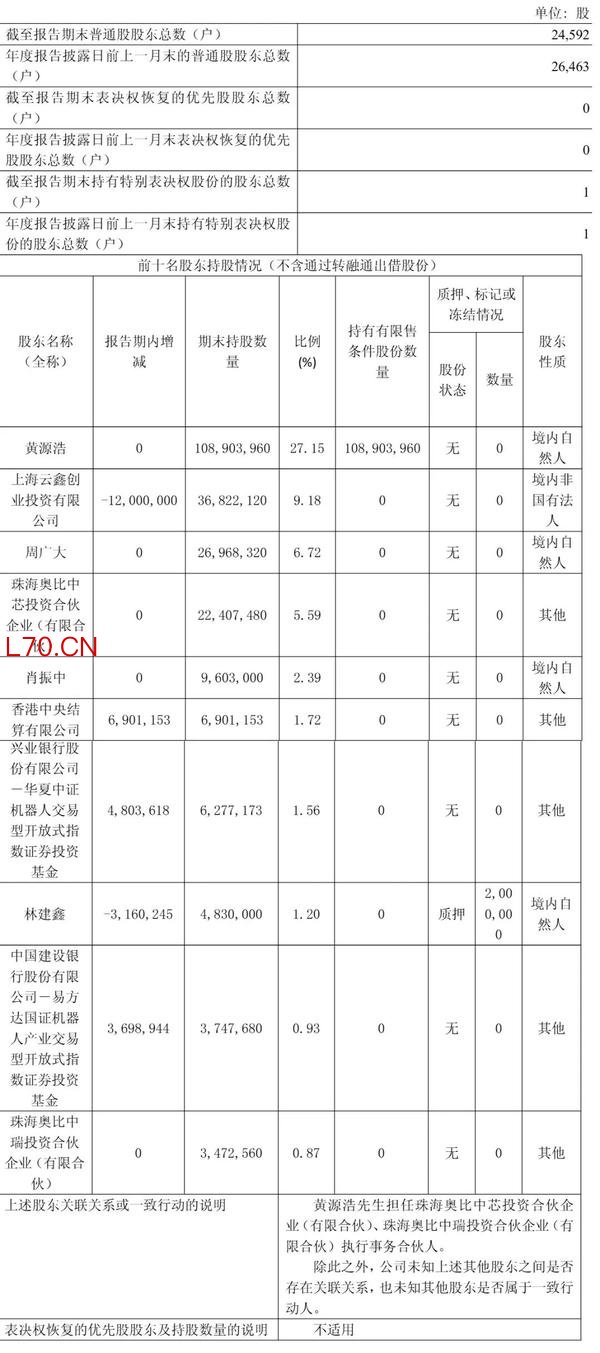 总体来看,奥比中光2025年第四季度股权结构变化不大。