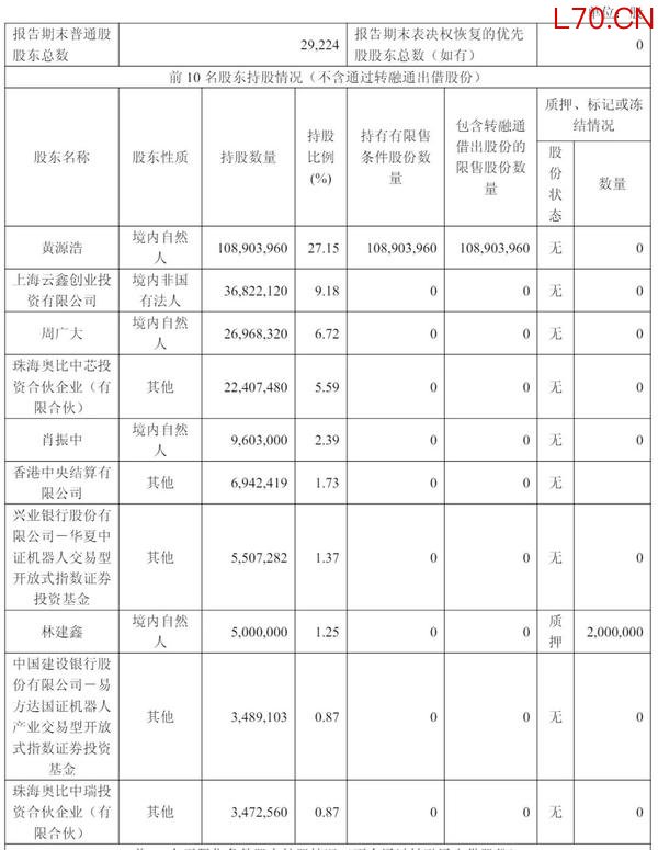 王远淞持股为2.39%,香港中央结算有限公司持股为1.73%,兴业银行股份有限公司-华夏中证机器人交易型开放式指数证券投资基金持股为1.37%,林建鑫持股为1.25%,中国建设银行股份有限公司-易方达国证机器人产业交易型开放式指数证券投资基金持股为0.87%,珠海奥比中瑞投资合伙企业(有限合伙)持股为0.87%。